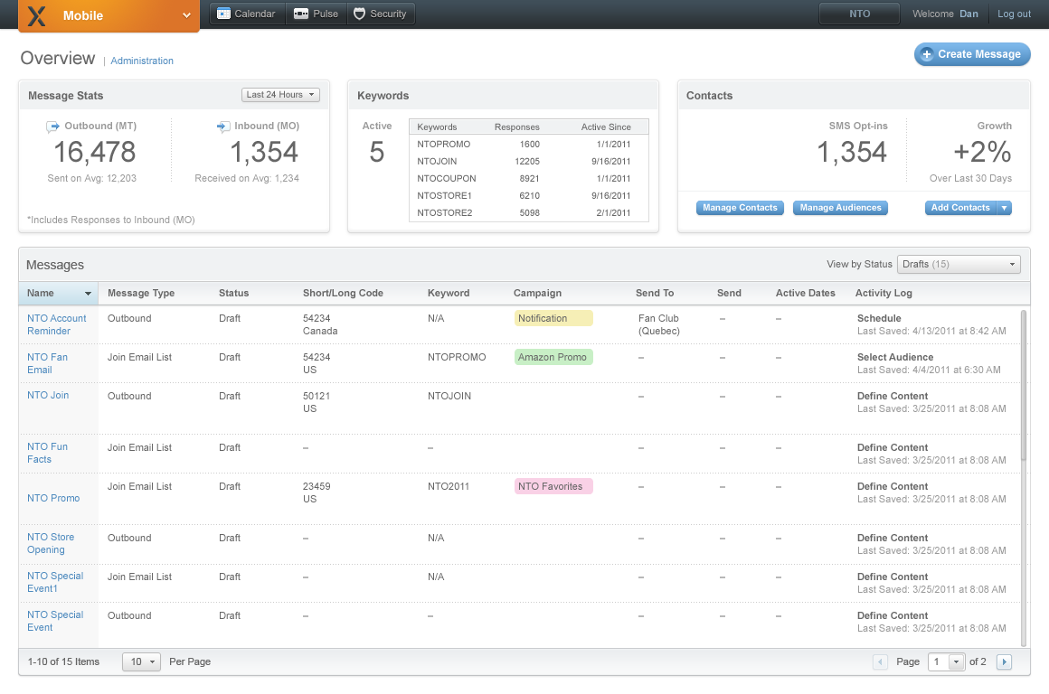 MobileConnect helps create, send, receive, and track SMS and MMS text messages. Send real-time alerts and transactional messages to subscribers using templates and a drag-and-drop interface. Automatically respond to incoming messages, manage keywords, and many other tasks.