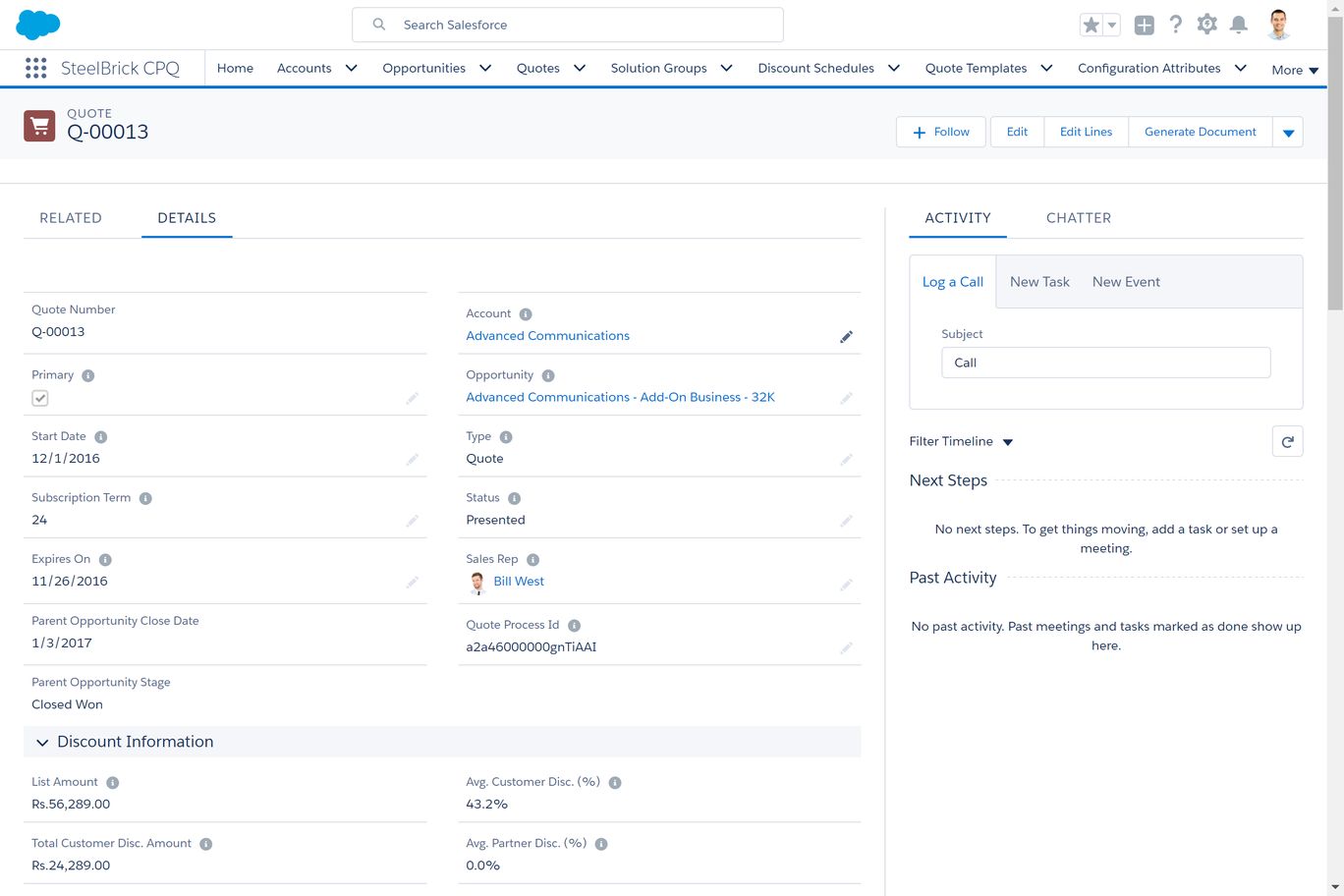 Salesforce CPQ helps manage pricing for all your products and services. It enables your sales team to create quotes with consistent pricing, including available discounts, quickly and accurately. Advanced pricing rules can be set to handle volume discounts, percent-of-total subscriptions, prenegotiated contact pricing and channel and partner pricing.