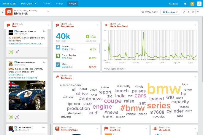 In Social Studio, you can publish content, engage with posts, and analyze posts from accounts on these social networks: Facebook, Twitter, LinkedIn, Google+, YouTube, Instagram & Pinterest.